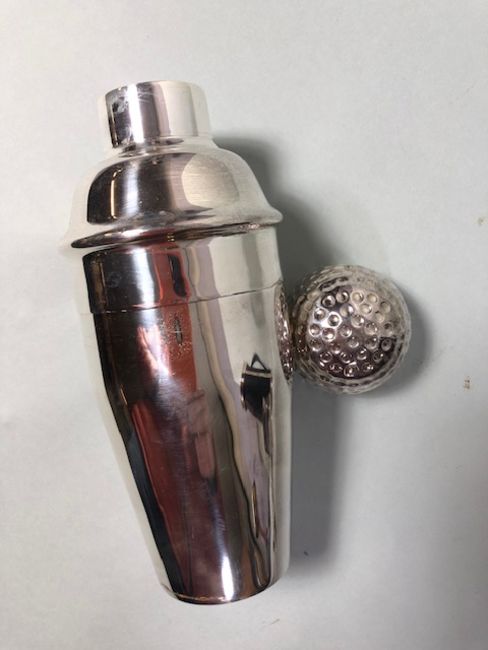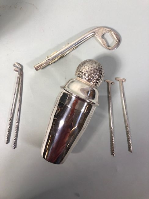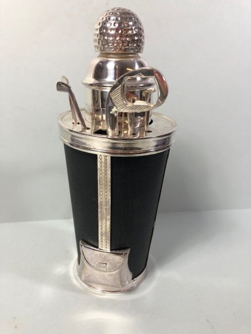 Cocktail shaker with utensils in the shape of a golf caddy approximately 32cm high