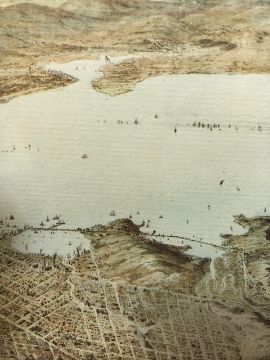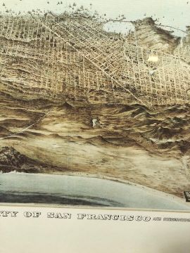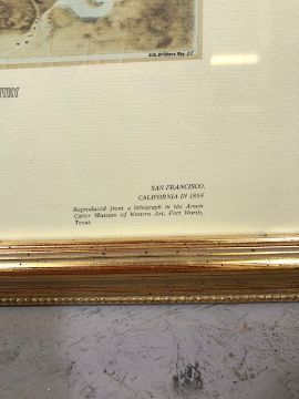 Modern reproduction of a 19th century print of the City of San Francisco, framed and glazed approximately 50 x 65 cm