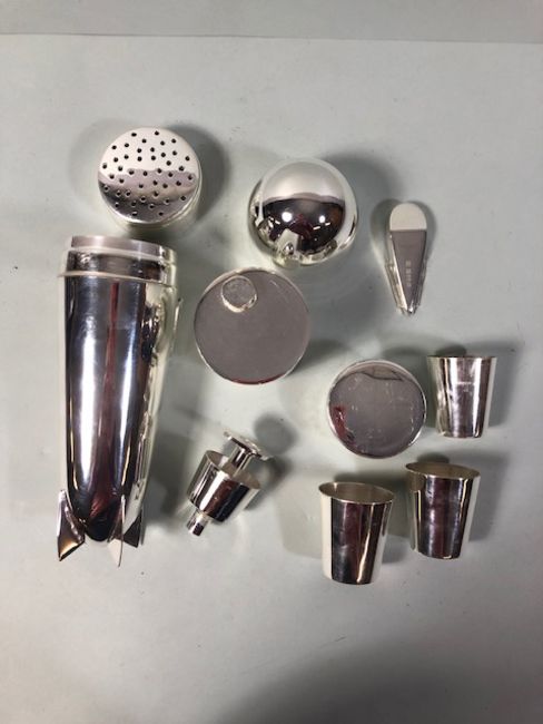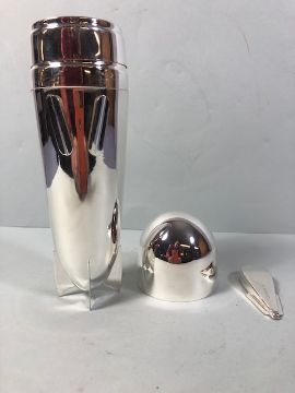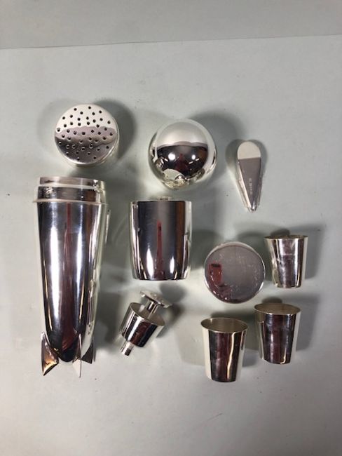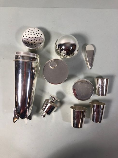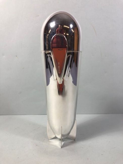 Cocktail shaker of white metal in the shape of a Zeppelin