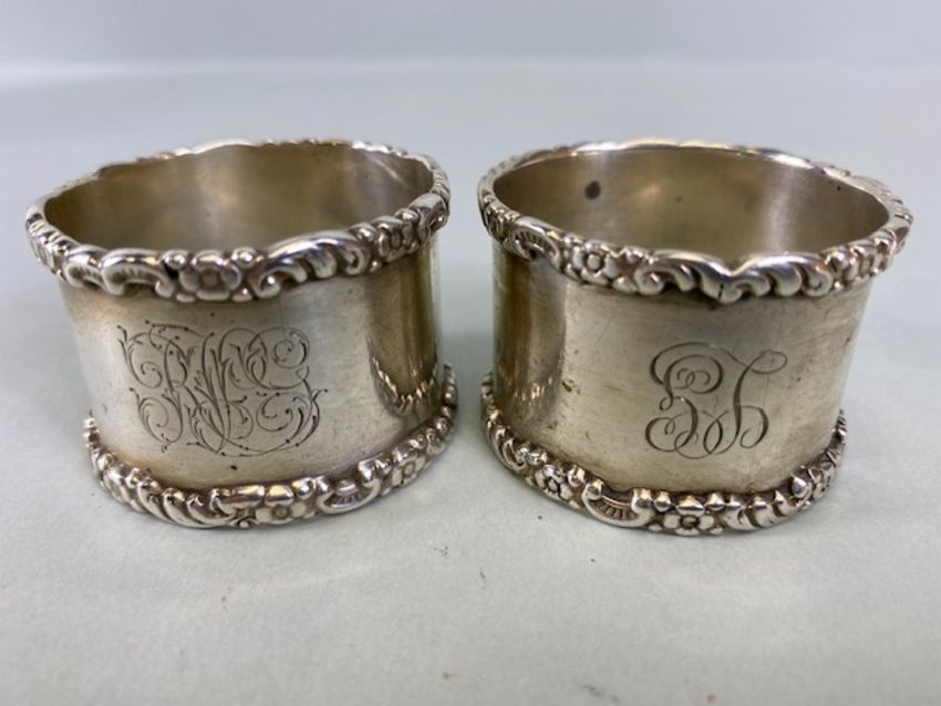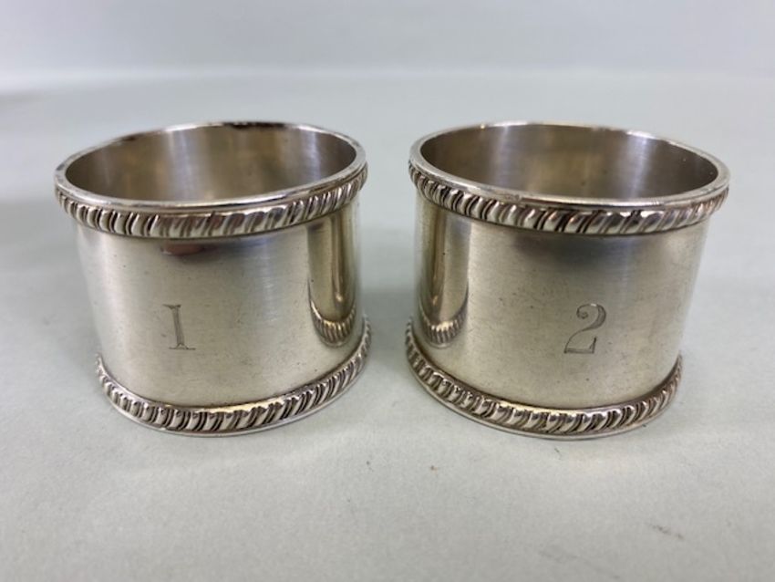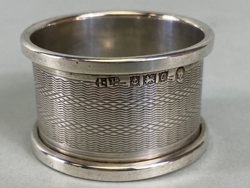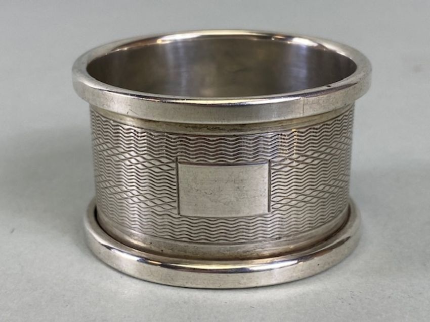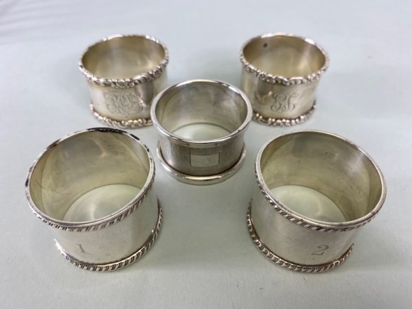 Collection of five Silver hallmarked napkin rings various makers and styles approx 160g