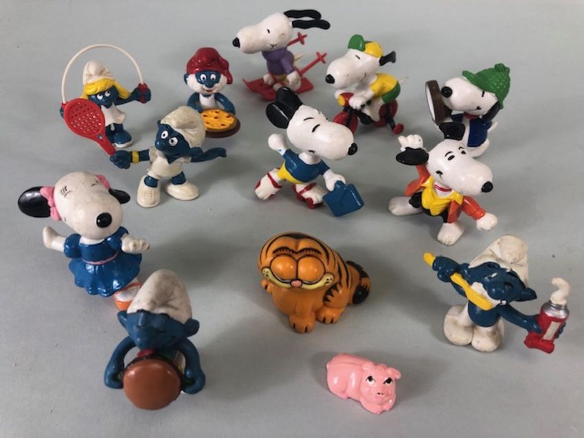 Collectable figures, quantity of vintage Snoopy and Smurf character figures from the 1980s