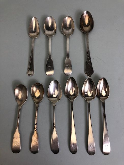 Collection of silver hallmarked spoons with Georgian and Irish Silver examples (10) approx 180g