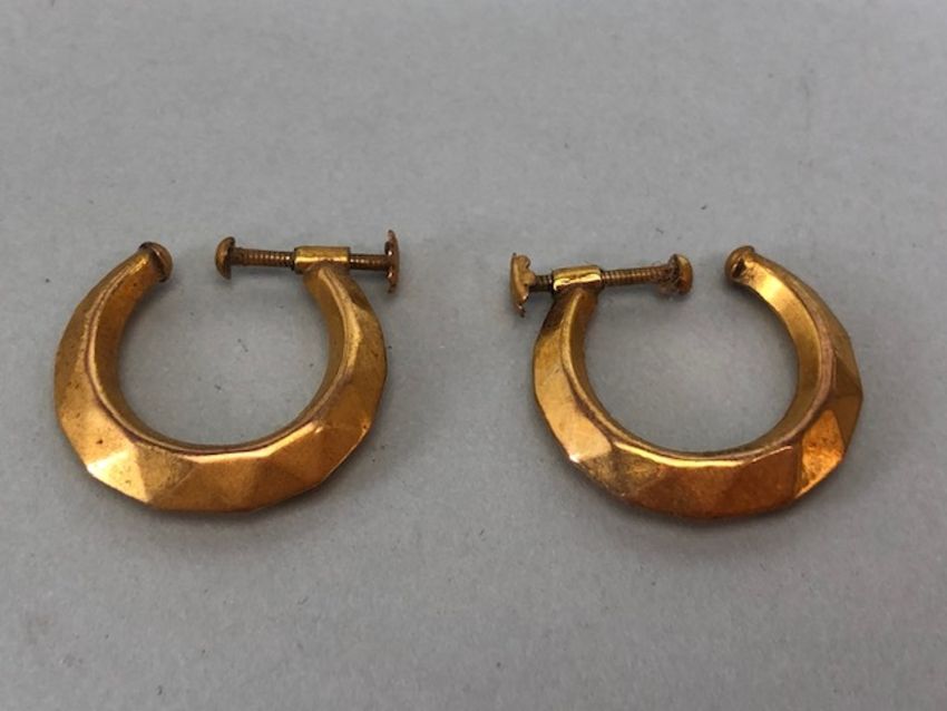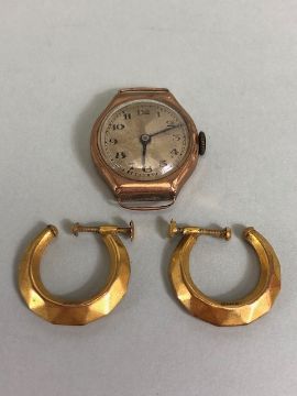 Pair of vintage 9ct Gold earrings (1.5) with screw attachment (clip on) and a 9ct gold cased watch (7.8g)