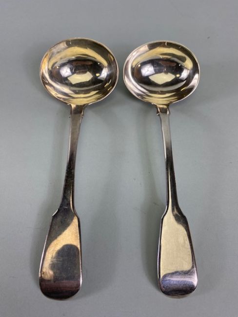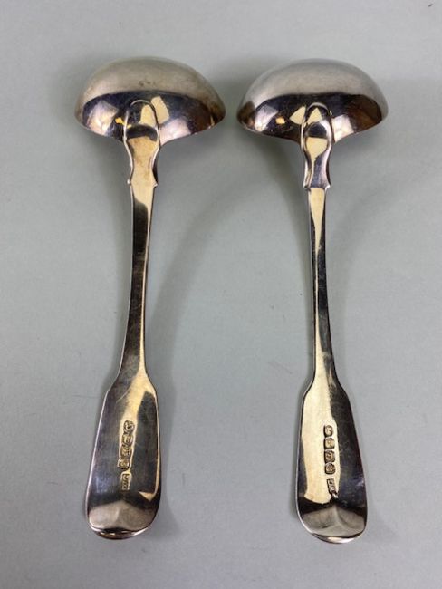 Pair of Hallmarked Silver Georgian ladles Hallmarked for London 1823 by maker WC approx 18cm in length and 118g